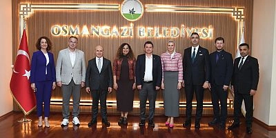 Marmara Belediyeler Birliği Toplantısı için Bursa’ya gelen Tekirdağ Büyükşehir Belediye Başkanı Candan Yüceer, Bilecik Belediye Başkanı Melek Mızrak Subaşı, Büyükçekmece Belediye Başkanı Hasan Akgün ve Kartal Belediye Başkanı Gökhan Yüksel, Osmangazi Belediye Başkanı Erkan Aydın’ı ziyaret etti. Belediye binasındaki makamında ağırladığı misafirlerine sosyal belediyecilik anlayışıyla yapmış oldukları çalışmalar hakkında bilgiler veren Başkan Aydın, mazbatayı almalarının ardından geçen her günü, Osmangazi’ye ve Osmangazili yurttaşlara en güzel hizmetleri sunabilmek için geçirdiklerini söyledi. Misafir belediye başkanları da kendi il ve ilçelerinde yaptıkları çalışmalarla ilgili bilgiler verdi.