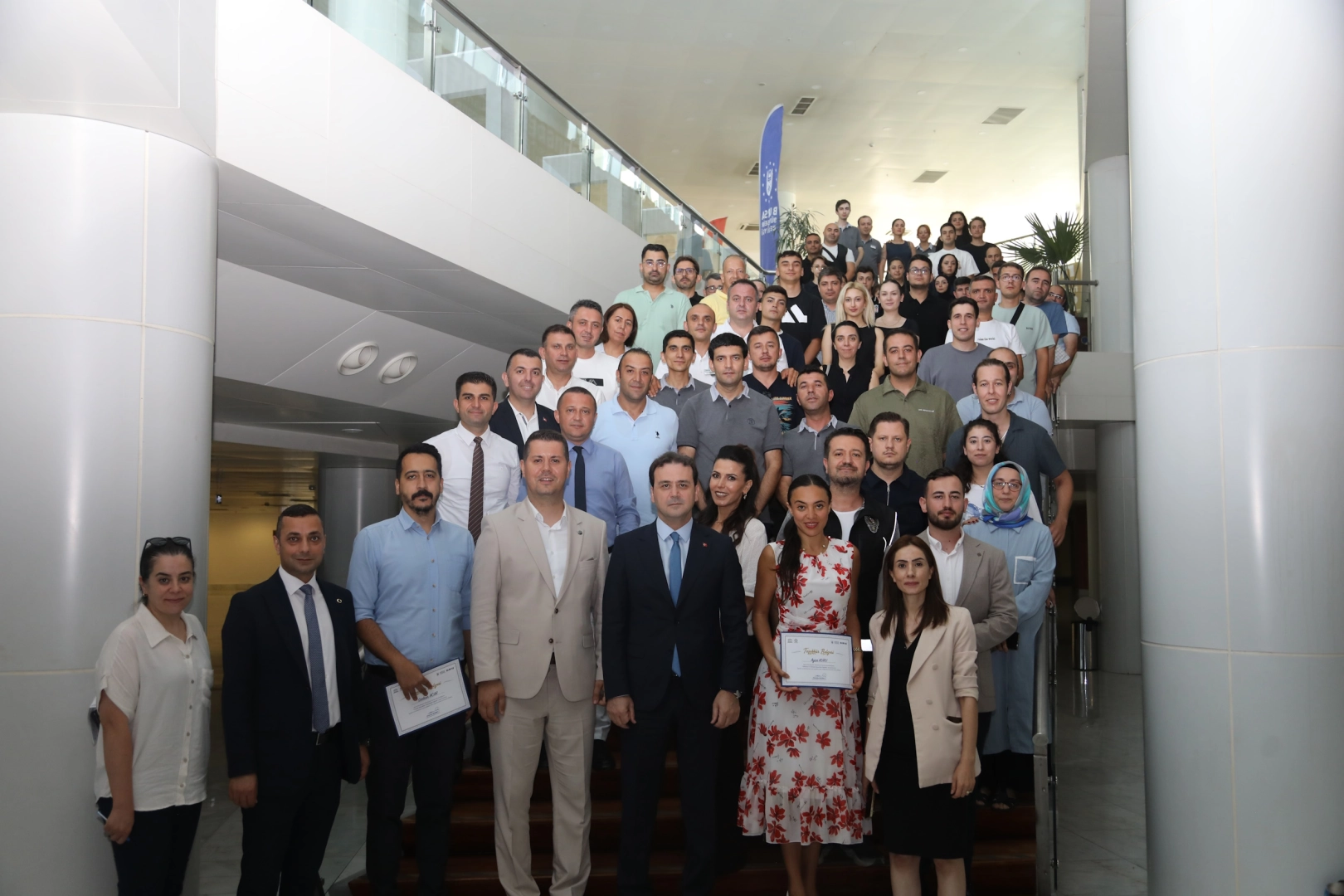 Eğitimlerin sonunda Genel Sekreter Yardımcısı Ali Altunsoy ile BURFAŞ Genel Müdürü Muhammet Erhan Pınar, eğitmenlere teşekkür belgeleri takdim etti.