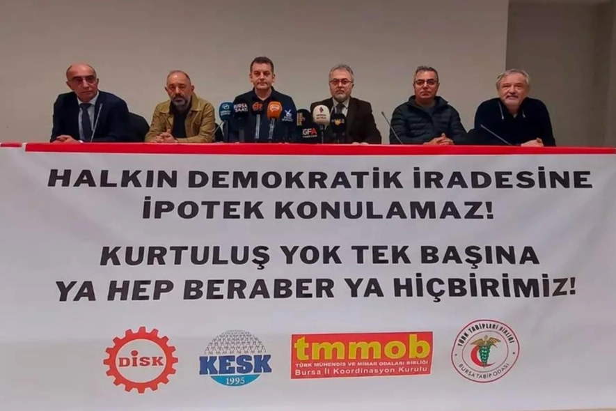Bursa Tabip Odası Genel Sekreteri Dr. Muhsin Güllü tarafından okunan açıklamada, demokratik hakların savunulmasının meşru ve hayati bir sorumluluk olduğuna dikkati çekilerek, hiçbir baskının bu mücadeleyi durduramayacağı belirtildi.