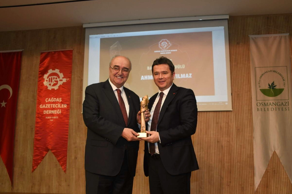 Basın Onur Ödülü’ne layık görülen Ahmet Emin Yılmaz ödülünü Osmangazi Belediye Başkanı Erkan Aydın’ın elinden aldı. Aydın, Yılmaz'ın meslekteki 48. yılını kutlayarak, “Bu ödülü 50. yılda sunmak isterdik, 2 sene sonra birlikte oluruz” dedi. Ayrıca, son bir yılda dünyada 67 gazetecinin hayati tehlikeler yaşadığına dikkat çekerek Türkiye’de gazetecilerin cezaevine konulduğunu belirtti ve "Umudumuzu kaybetmeyelim" dedi.