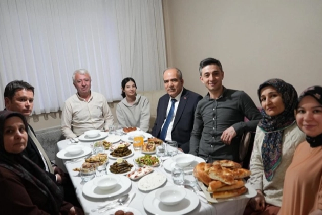 BURSA (İGFA) - Ramazan ayının birlik ve bereketini, vatandaşlarla bir arada olarak yaşayan Bursa Osmangazi Belediye Başkanı Erkan Aydın, CHP Osmangazi İlçe Başkanı Raşit Gürbüz ile birlikte iftarda Ayaz ailesinin misafiri oldu. Ev sahibi Mehmet Ayaz, eşi Ayşe Ayaz, çocukları ve yakınlarının bulunduğu iftar sofrasında orucunu açan Başkan Aydın, Ramazan ayında paylaşmanın ve dayanışmanın önemine vurgu yaptı. Ayaz ailesine sıcak misafirperverlikleri için teşekkür eden Başkan Aydın, birlik ve beraberlik duygularının en yoğun yaşandığı Ramazan ayında kalabalık sofralarda iftar yapıyor olmaktan dolayı, mutluluk duyduğunu söyledi. “Birlikte aynı sofrayı paylaşmak, Ramazan’ın bereketini ve dayanışmasını hep birlikte hissetmek bizler için çok kıymetli” diyen Başkan Aydın, Ramazan ayında Osmangazili yurttaşlar ile aynı sofrada buluşmaya devam edeceğini ifade etti.