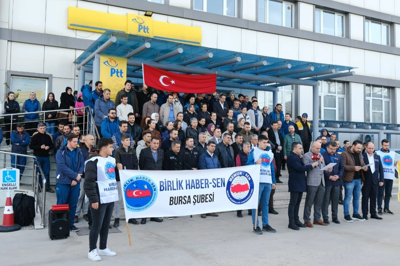 Birlik Haber-Sen Bursa Şubesi Bursa PTT Başmüdürlüğü önünde yaptığı eylemle kamudaki şiddet olaylarını protesto etti. Hayatlarını kaybeden personeller için Kur-an tilaveti ile başlayan eylem; basın açıklaması ile devam etti.