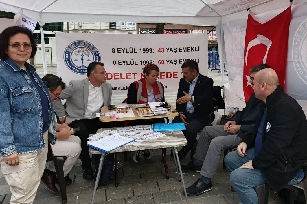 BURSA (İGFA) - Emeklilikte Adalet Derneği (EMADDER), Bursa Fomora 15 Temmuz Demokrasi Meydanı’nda kademeli emeklilik talebiyle stant açtı.