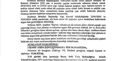 Ancak her nasılsa Mudanya Belediyesi müvekkilimin şirketine 10 Ocak’ta eksikliğin giderilmediğini yazmış, daha sonra itirazımız üstüne, “Memur sehven yaptı” diyerek, hatanın düzeltileceği bildirilmiştir. Buna rağmen, yasal süre olan 30 günün dolmasını beklemeden, büyük bir hızla evrakları Savcılığa gönderdikleri ortaya çıkmıştır.