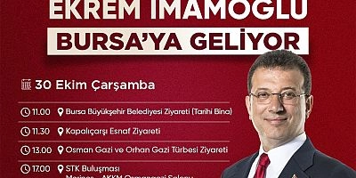 İstanbul Büyükşehir Belediye Başkanı ve Türkiye Belediyeler Birliği Başkanı Ekrem İmamoğlu yarın (30 Ekim Çarşamba) Bursa'ya geliyor.