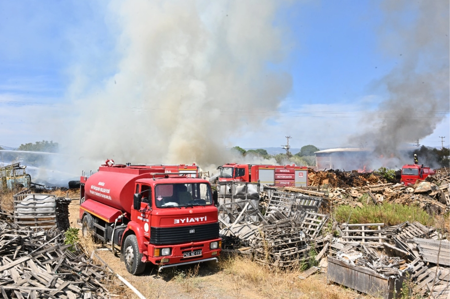 Manisa Büyükşehir Belediyesi, Yunusemre Belediyesi, Orman İşletme Müdürlüğü, Muradiye Organize Sanayi Bölgesi (MUOSB) ve İl Emniyet Müdürlüğünün TOMA araçları yangın söndürme çalışmaları için seferber oldu. Alevlerin yayılmaması için 45 personel ve 22 araçla söndürme çalışmalarının yürütüldüğünü söyleyen İtfaiye Dairesi Başkanı Gürhan İnal, yangının kontrol altına alındığını ve soğutma çalışmalarının devam ettiğini kaydetti.