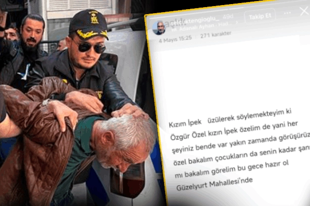 Instagram’da “selcuktengioglu_” kullanıcı adlı hesap üzerinden yapılan paylaşımda, “Kızım İpek… üzülerek söylemekteyim ki Özgür Özel kızın İpek özelim de yani her şeyiniz bende var… özel bakalım çocukların da senin kadar şanslı mı bakalım… bu gece hazır ol” ifadeleri kullanıldı. Aynı mesajda İpek Özel’in açık adresi yazılarak paylaşım “Bu filmin sonu sizin sonunuz mezarlıkta olur” cümlesiyle sonlandırıldı.