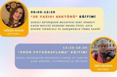 Kadın girişimciliğini teşvik etmeyi amaçlayan projenin 2. eğitimi, 18 Temmuz Cuma günü Denizli Büyükşehir Belediyesi Kongre ve Kültür Merkezi’nin S2 salonunda yapılacak. Girişimci ve üretken kadınların dijital alanda daha güçlü olmalarını sağlamayı hedefleyen bu eğitim programı, “3D Yazıcı Sektörü” ve “Ürün Fotoğraflama” başlıkları altında gerçekleştirilecek. KADIN ÜRETİCİLER, DİJİTAL DÜNYADA REKABET GÜCÜ KAZANACAK 09.00-16.00 saatleri arasında sürecek eğitimde katılımcılar, yenilikçi üretim teknolojilerinden 3 boyutlu yazıcı sektörünü ve e-ticarette büyük önemi olan ürün fotoğrafçılığını öğrenme imkanı bulacaklar.