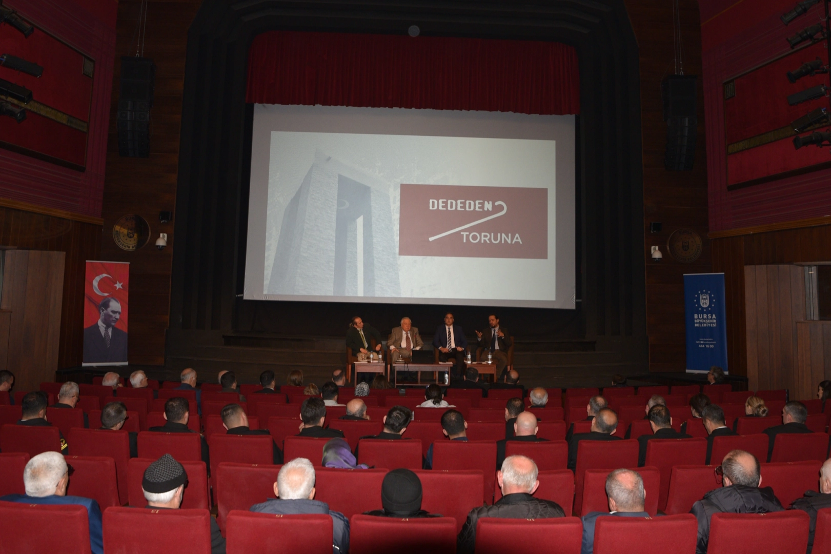 Bursa Büyükşehir Belediyesi Kültür ve Sosyal İşler Dairesi Başkanlığı ev sahipliğinde Çanakkale Savaşı’nda şehit düşmüş komutanları anmak ve hatıralarını yaşatmak amacıyla ‘Dededen Toruna-Çanakkale Cephesi Kahraman Komutanları’ isimli söyleşi düzenlendi. Tayyare Kültür Merkezi’ndeki programa, Kültür ve Sosyal İşler Dairesi Başkanı Şafak Baba Pala, İl Kültür Turizm Müdürü Dr. Kamil Özer, Işıklar Jandarma Astsubay Meslek Yüksekokulu’nda görevli komutanlar ve vatandaşlar katıldı. Çanakkale Onsekiz Mart Üniversitesi öğretim üyesi Prof. Dr. Murat Karataş’ın moderatörlüğünde gerçekleştirilen söyleşiye, Yarbay Hüseyin Avni Bey’in torunu Hüseyin Avni Tanman, Yarbay İzzettin Bey’in torunu İzzeddin Çalışlar, Yarbay Mehmet Nuri Bey’in torunu Yasemin Conker, Binbaşı Ali Faik Bey’in Torunu Erdal Kabatepe ve Binbaşı Halis Bey’in torunu Serdar Halis Atakspor konuşmacı olarak katıldı. Programda, Çanakkale Cephesi’nde görev almış komutanların azmi, cesareti ve kahramanlıkları torunları tarafından günümüze taşındı. Çanakkale Zaferi'ni kazanan şehit komutanların savaş anıları, belgelerle desteklenerek dinleyicilere aktarıldı. Geçmişin kahramanlık hikayeleri döneme ait fotoğraf ve videolarla pekiştirildi. Program sonunda Kültür ve Sosyal İşler Dairesi Başkanı Şafak Baba Pala tarafından kahraman komutanların torunlarına günün anısına hediye takdim edildi.