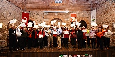 Ritim Atölyesi’nin ikinci dönemini başarıyla tamamlayan ve sertifikalarını alan kursiyerler, bu imkanı kendilerine sunduğu için Osmangazi Belediye Başkanı Erkan Aydın’a teşekkür etti.