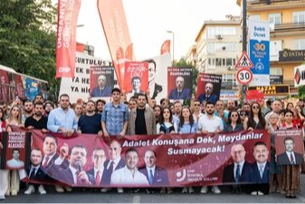 Başkan Cem Aydın, tüm tutuklu başkanlar için özgürlük temennisinde bulunarak, "Cumhurbaşkanı Adayımız Ekrem İmamoğlu ve tutuklu tüm belediye başkanlarımızın özgürlüğü için, Bakırköy’de Özgür Özel başkanlığında düzenlediğimiz özgürlük eylemine gençlik kortejimizle birlikte katıldık," dedi.