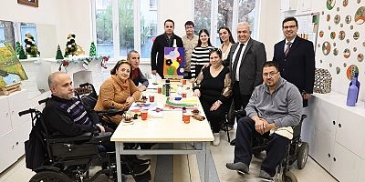 Başkan Şadi Özdemir, Başkan Yardımcısı Okan Şahin ve birim çalışanları ile birlikte Bizim Ev’de devam eden kursları tek tek gezerek el işi, tablo ve resim gibi sanatsal çalışmalar gerçekleştiren engelli bireylerle sohbet etti.