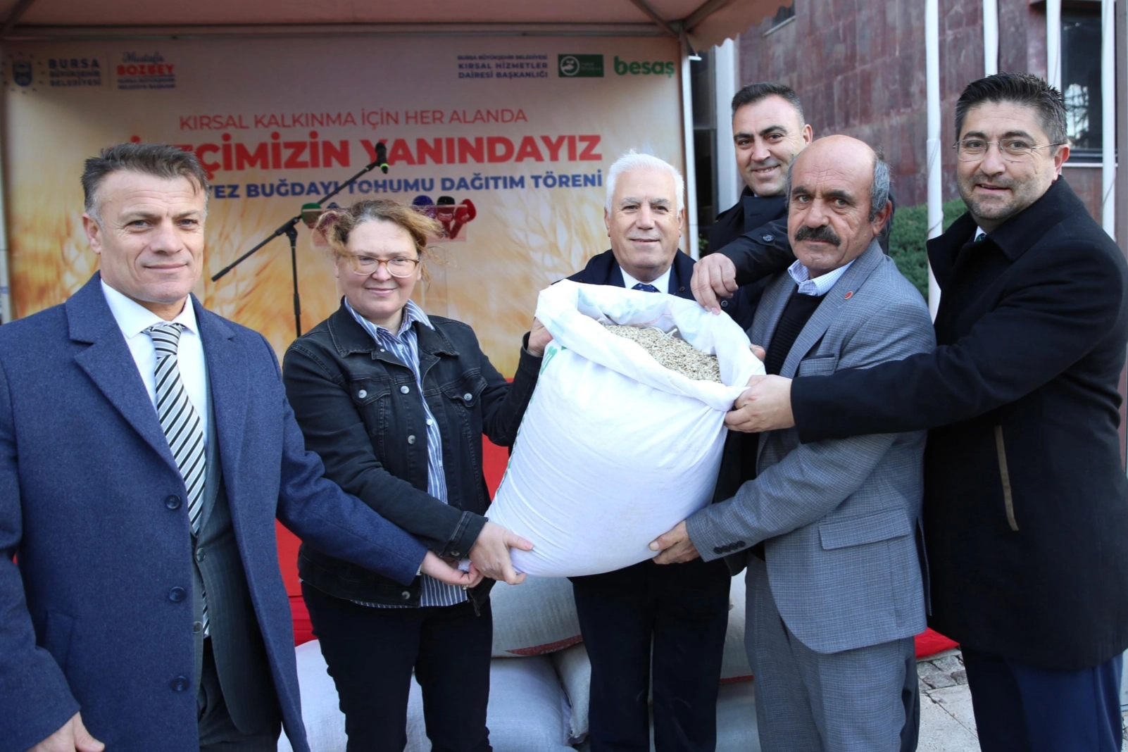 Köyden kente göçün önüne geçmek ve üreticilerin gelirlerinin artmasını sağlamak amacıyla projeler geliştirdiklerini belirten Büyükşehir Belediye Başkanı Mustafa Bozbey, göreve geldikleri günden bu yana çiftçilere toplam 1 milyon 315 bin 839 adet fide ve fidan, 1 milyon 35 bin 82 ton tohum, 103 bin 400 kilogram sıvı gübre ile birlikte 12 milyon 230 bin metre damla sulama borusu dağıtımı yaptıklarını belirtti. "Üreticiyi yalnızca üretim aşamasında değil, pazarlama sürecinde de destekliyoruz" diyen Başkan Bozbey, bu kapsamda çiftçilerimizden 923,65 ton meyve satın alarak doğrudan destek olduklarını, önümüzdeki süreçte desteklerimizi artırarak sürdüreceklerini söyledi.