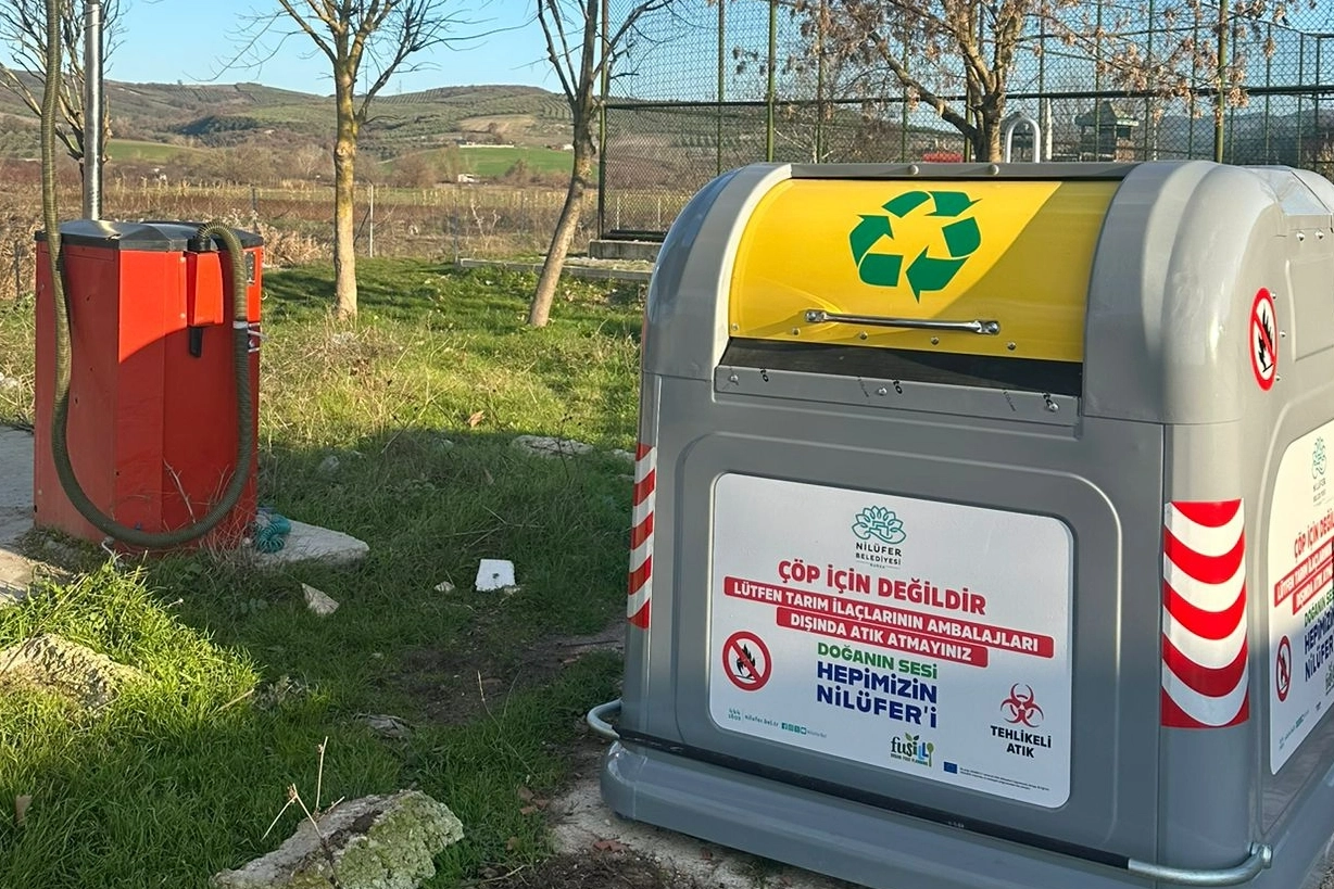 BURSA (İGFA) - Bursa Nilüfer Belediyesi, çevre ve insan sağlığını tehdit eden zirai ilaç ambalaj atıklarının kontrollü toplanması için yürüttüğü çalışmaları genişletiyor. Bu kapsamda Konaklı, Fadıllı, Başköy ve Çatalağıl Mahallelerinin ardından Çaylı Mahallesi'ne de özel atık konteyneri yerleştirildi.