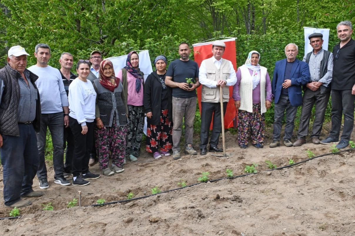 Ahududu fidelerini toprakla buluşturarak can suyunu veren Osmangazi Belediye Başkanı Erkan Aydın, “Tamamen organik yetiştiricilik yapmak istiyoruz. İlaçlama kesinlikle yapmayacağız. Doğal gübre kullanacağız. İhracat odaklı hareket edeceğiz. Çiftçinin, köylünün para kazanması birinci hedefimiz. Bu çalışmamızı burada başarılı kılabilirsek, bundan sonraki süreçte, bütün dağ köylerinde üretim başlatmak istiyoruz. Köylerde yaşayan gençlerimiz, kent merkezine gelip asgari ücret ile iş arıyor. Halbuki köylerinde ahududu gibi orman meyveleri yetiştiriciliğini yaparak, ciddi gelir elde edebilirler. İhracat için Türkiye pazarında yüksek talep var. Ancak doğru üretim teknikleri gerekiyor. Biz üreticilere, her türlü teknik, fiziki ve maddi desteği sağlayacağız. İlerleyen süreçte, yetiştirilen ürünlerin saklanması adına da bir soğuk hava deposunu inşa edeceğiz. Üreticilerimizin pazarda rekabet gücü elde etmesini amaçlıyoruz. Birkaç tüccar, kendi aralarında anlaşarak köylüden istediği fiyata ürününü alıyor. Bütün yılın emeği boşa gidiyor. Bu da çiftçimizin üretimdeki şevkini kırıyor. Durum böyle olunca, insanlar bağını, bahçesini bırakıp, fabrikalarda işçi olmaya gidiyor” dedi.