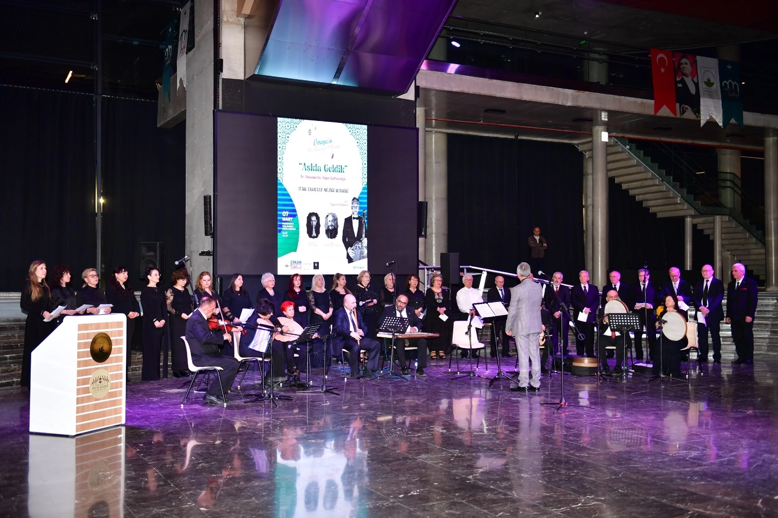 Dr. Hüsamettin Olgun’un güfteleriyle, Tuğberk Çelikkol’un şefliğinde gerçekleşen konser, tasavvuf müziğinin ruhani atmosferini izleyicilere en güçlü şekilde hissettirdi. Manevi duyguların yoğun olarak yaşandığı geceye Ertan Bilgi de konuk sanatçı olarak katkı sunarken, değerli eserler dinleyicilerin alkışları eşliğinde seslendirildi. Program boyunca salonda bulunan sanatseverler, tasavvuf müziğinin derinlikli ezgileriyle adeta manevi bir yolculuğa çıktı.