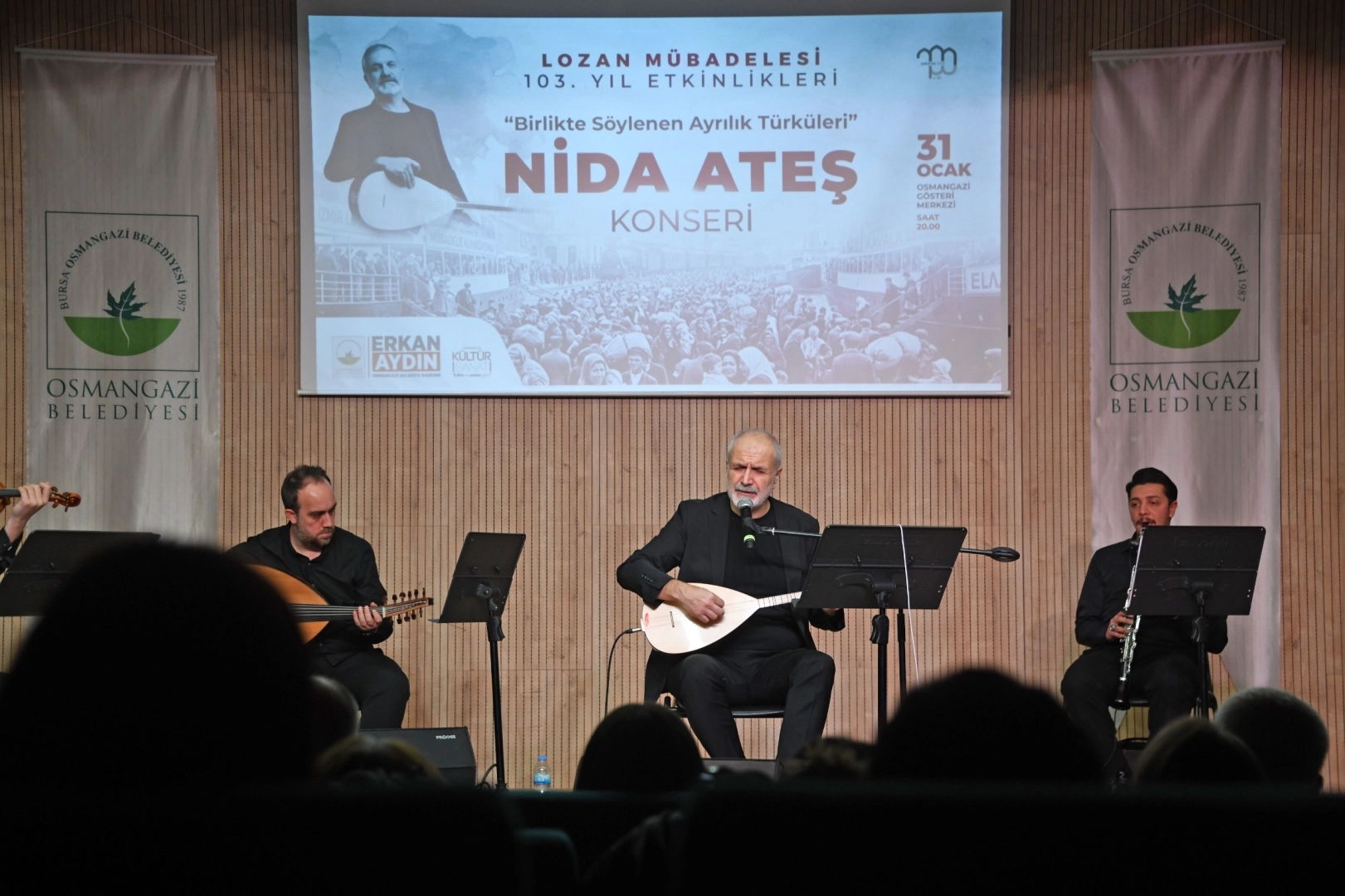 Bursa'da Osmangazi Belediyesi, Lozan Mübadelesi’nin 103’üncü yılı dolayısıyla anlamlı bir konsere ev sahipliği yaptı. “Birlikte Söylenen Ayrılık Türküleri” başlığıyla sahne alan Nida Ateş, ayrılığın ve hasretin ortak hafızadaki izlerini türküler aracılığıyla dinleyicilere aktardı.
