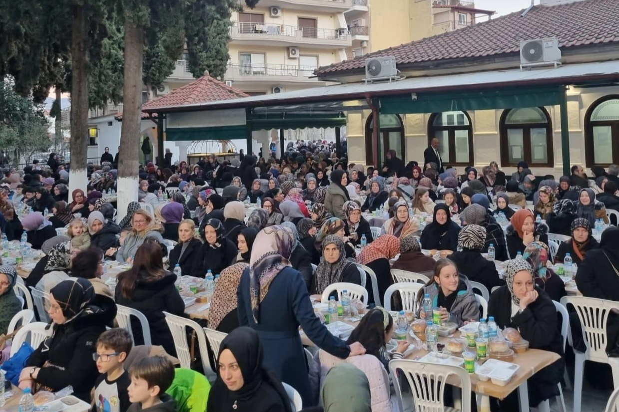 BURSA (İGFA) - Ramazan ayının manevi iklimine uygun, birlik ve kardeşlik ruhunun en güzel şekilde yaşatıldığı İskeçe’deki iftar programında yüzlerce kişi aynı sofrada buluştu. Yunanistan’ın Türk ve Müslüman nüfusunun yoğunlukta olduğu İskeçe’de düzenlenen programlarda birlik ve beraberlik mesajları verilirken duygulu anlar da yaşandı. İftar yemeğine Osmangazi Belediye Başkanı Erkan Aydın’ın yanı sıra Gümülcine Başkonsolosu Aykut Ünal, Kozlukebir Belediye Başkanı Erdem Hüseyin, Gümilcine Türk Gençler Birliği Başkanı Sedat Hasan, İskece Müftüsü Mustafa Trampa, Osmangazi Belediye Başkan Yardımcıları ve Meclis Üyeleri ile Gümülcine, Dedeağaç ve İskeçe’den gelen soydaşlar katıldı. Cami avlusunda gerçekleştirilen iftar yemeğinde, akşam ezanının okunmasının ardından hep birlikte dua edilerek oruç açıldı.