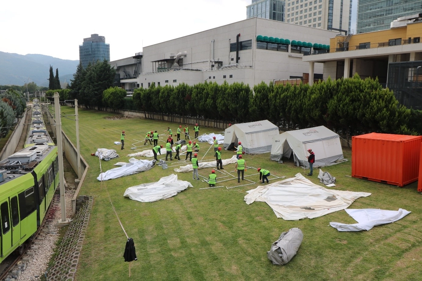 BURSA (İGFA) - Bursa'da olası afet durumları veya acil hâllerde hazırlıklı olma amacıyla tüm birim ve iştiraklerle birlikte çalışmalarını sürdüren Büyükşehir Belediyesi, son olarak BURULAŞ personeline yönelik çadır kurma eğitimi gerçekleştirdi. Afet Koordinasyon Merkezi (AKOM) koordinasyonuyla düzenlenen eğitim, AFAD yetkilileri tarafından BURULAŞ hizmet binası bahçesinde yapıldı.