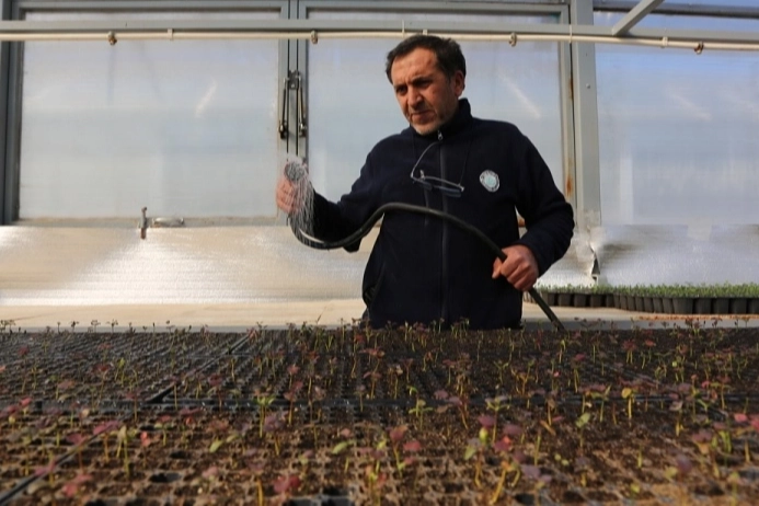 ESKİŞEHİR (İGFA) - Yıllardır gerçekleştirdiği yeşil alan çalışmaları ile Eskişehir’i Türkiye’nin örnek kentlerinden biri haline getiren Eskişehir Büyükşehir Belediyesi, çeşitli ağaç ve çalı türlerini kendi fidanlıklarında ve seralarında üretiyor. Bu üretim çalışmaları, kentin doğal güzelliklerini artırmak ve çevreye katkı sağlamak amacıyla titizlikle yürütülüyor. Büyükşehir Belediyesi Park ve Bahçeler Dairesi Başkanlığı Yeşil Alanlar Şube Müdürlüğü ekipleri, Karacaşehir ve Kızılinler Mahallesi’nde bulunan fidanlık alanlarında ve polikarbon seralarında şehrin dört bir yanını süslemek için çeşitli çalı ve ağaç türlerinin üretimine devam ediyor. 2025 yılı için yapılan çalışmalar kapsamında, 41 bin 754 adet ağaç ve çalı çeliği alındı, bin 347 adet ağaca aşı yapıldı ve 2 bin 438 adet ağaç ile çalı, repikaj alanlarına dikildi. Böylelikle 2025 yılı boyunca toplamda 88 bin 906 adet bitki üretimi için tohum ekimi, çelik alımı, aşı yapımı, repikaja dikim, repikajdan söküm ve saksıya alma gibi bir dizi işlem gerçekleştirildi. Bu işlemler, Eskişehir’in yeşil alanlarının kalitesini arttırmak ve kentin doğal güzelliklerini koruyarak, yaşam alanlarını daha sağlıklı hale getirmek amacıyla titizlikle yapıldı. Büyükşehir Belediyesi, bu çalışmalarla sadece kenti güzelleştirmekle kalmıyor, aynı zamanda çevre bilincini artırmaya ve geleceğe sürdürülebilir yeşil alanlar bırakmaya da büyük önem veriyor. Yıllar içinde kazandığı deneyimle Eskişehir’i, doğa dostu bir şehir olarak geleceğe taşımayı hedefliyor. Eskişehir Büyükşehir Belediyesi, 2023 yılının Ocak ayında Türkiye’de başlatılan Ulusal Su Verimliliği Seferberliğine de uyum sağlıyor. Kentsel su verimliliği eylemleri arasında yer alan kurakçıl peyzaj uygulamalarına ilişkin “Kurakçıl Peyzaj Uygulamaları Rehberi” doğrultusunda Büyükşehir Belediyesi fidanlık alanlarında, rehberde yer alan 87 cins bitki yetiştiriliyor ve yeşil alanlarında kullanıyor.