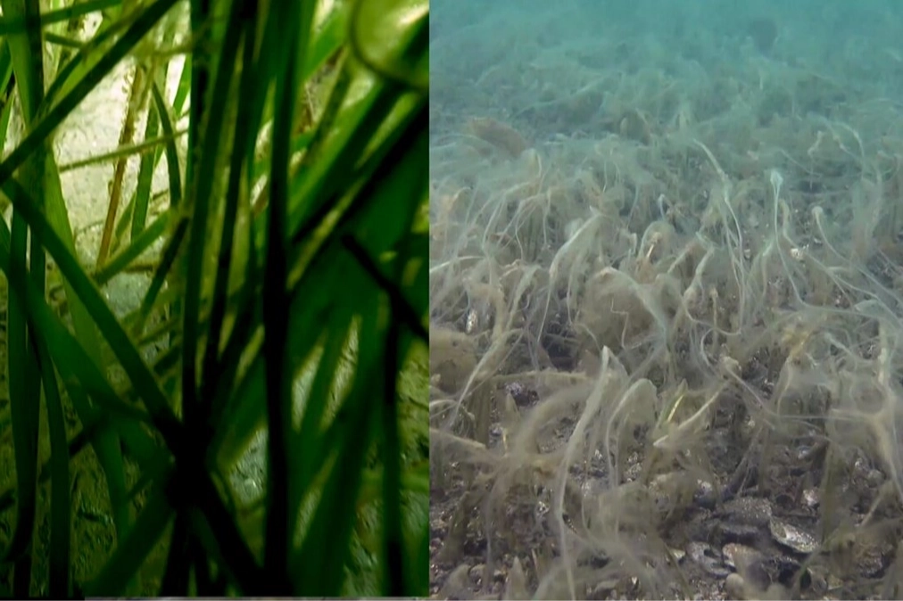 Müsilajın Ekim ayı sonunda Erdek Körfezi’nde başladıktan sonra yaklaşık 45 günde İzmit Körfezi’ne ulaşarak güneyden kuzeye Marmara Denizi’ni örümcek ağı gibi sardığını anımsatan Prof. Dr. Sarı, yüzeyden itibaren 30 metre derinliğe kadar tüm Marmara’yı kaplayan müsilaj bir taraftan dibe çökerek pinalar ve süngerler gibi canlılarla birlikte deniz çayırlarını etkilerken bir taraftan da yüzeye çıkmaya başladığını söyledi.