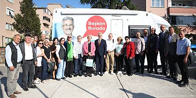Nilüfer Belediye Başkanı Turgay Erdem, ‘Başkan Burada’ karavanıyla Cumhuriyet Mahallesi’nde mahalle muhtarı ve sakinlerinin talep, öneri ve şikayetlerini dinledi.