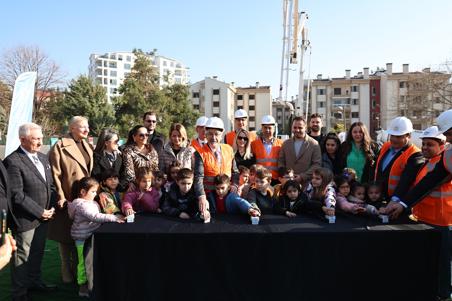 Konuşmaların ardından Başkan Turgay Erdem ve beraberindekiler Nilüfer Belediyesi’nin kreşlerinde eğitim alan çocuklarla birlikte butona basarak temele ilk harcı attı.