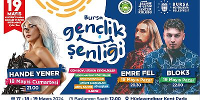 Bursa Büyükşehir Belediyesi tarafından hazırlanan birbirinden farklı etkinliklerle, 19 Mayıs Atatürk’ü Anma, Gençlik ve Spor Bayramı bu yıl da coşkuyla kutlanacak. Spor müsabakalarından atölyelere kadar üç gün boyunca sürecek olan kutlamalarda, Hande Yener, Emre Fel ve Blok3 gibi ünlü isimler Bursalılar için sahne alacak.