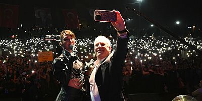 Konuşmanın ardından Başkan Mustafa Bozbey ve eşi Seden Bozbey, ellerindeki Türk bayraklarıyla alanı dolduran gençleri selamladı.