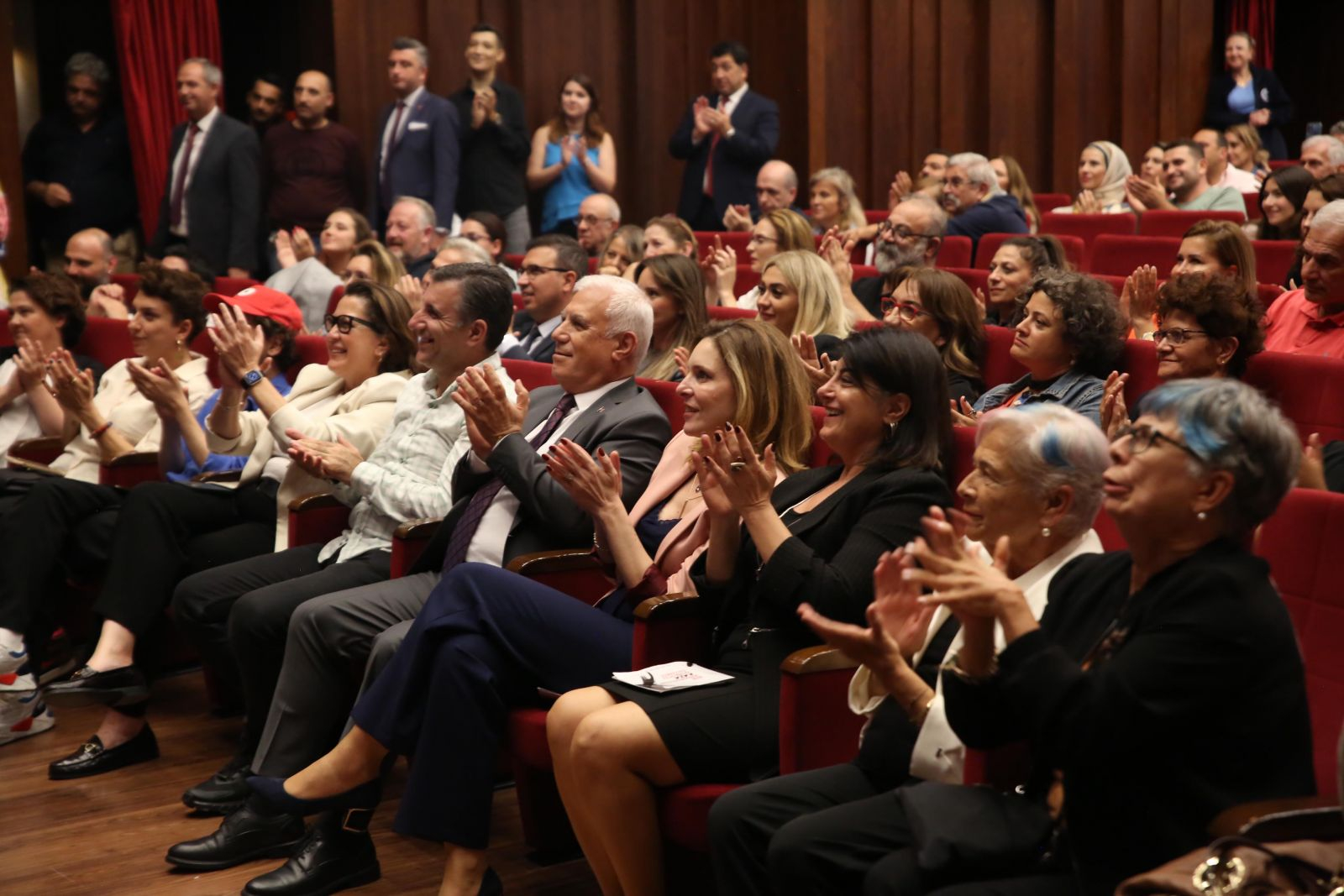 Tiyatrocuların, performanslarıyla sahnede adeta devleştiği oyunu beğeniyle izleyen Bursa Büyükşehir Belediye Başkanı Mustafa Bozbey, oyunun sonunda sahneye çıkarak tiyatrocuları tebrik etti. Bursa Şehir Tiyatrosu’nun kurucusu Feyha Çelenk, yönetmen Murat Karasu ve Bursa Şehir Tiyatrosu Genel Sanat Yönetmeni Ali Düşenkalkar ile birlikte sahneye çıkan Başkan Mustafa Bozbey, Feyha Çelenk’in izinden çalışmalarını sürdüreceklerini söyledi. Şehir Tiyatrosu’nda bugüne kadar emeği geçen herkesi kutlayan Başkan Bozbey, “Harika bir oyun izledik. Emeği geçenlere teşekkür ediyorum. Ali Düşenkalkar ile bundan sonra çok güzel işlere imza atacağız. Tiyatroyu, 17 ilçemize de taşıyacağız. Tüm halkımızla tiyatroyu buluşturacağız” dedi.