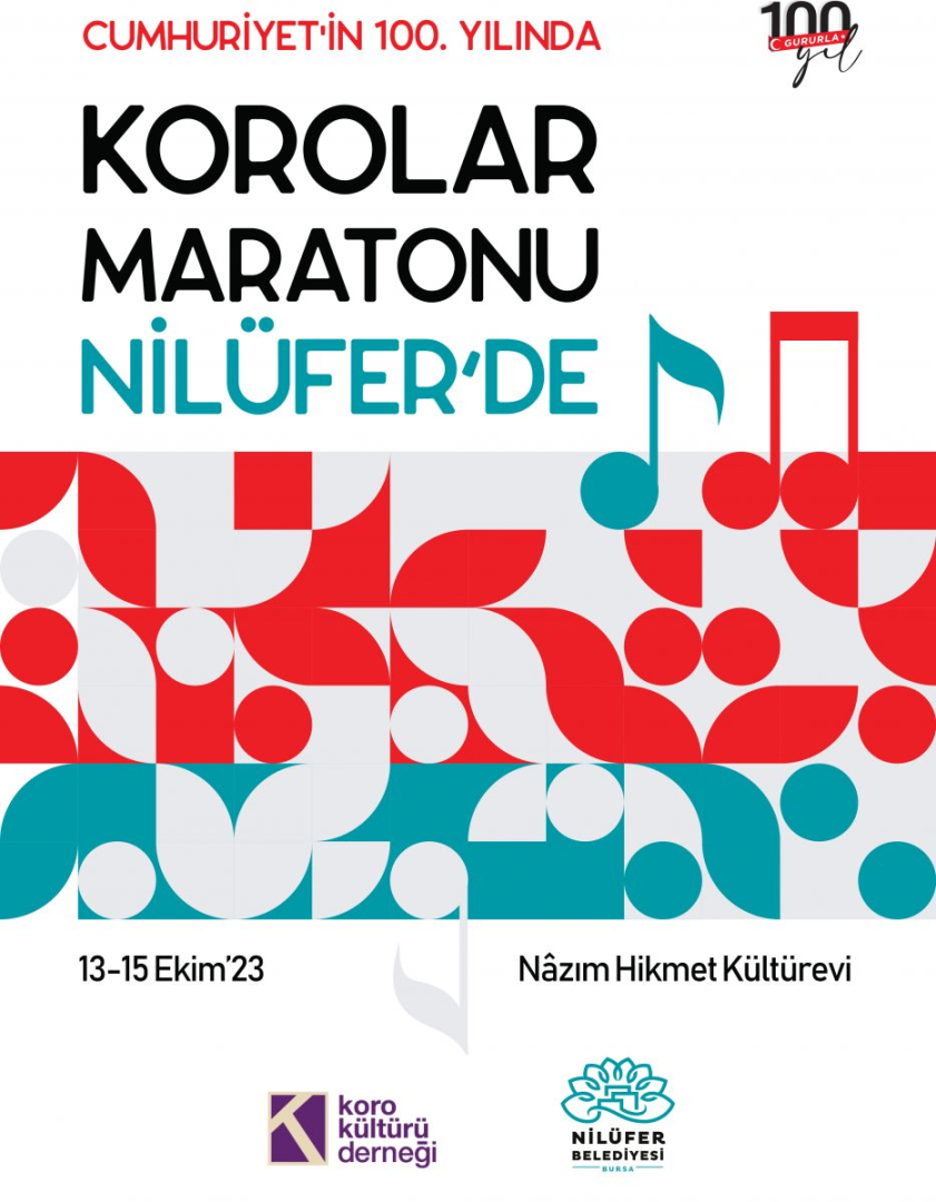 Nilüfer Belediyesi, Cumhuriyet’in 100. yılında, Koro Kültürü Derneği’nin düzenlediği Korolar Maratonu’na ev sahipliği yapıyor. Çeşitli yaş gruplarından koroların yer alacağı maratonda; gerek yapılanmalarıyla gerek seslendirdikleri farklı özellikteki eserlerle farklı şehirlerden toplam 31 koro, seyirciyi Türkiye koro müziğinin farklı renkleriyle buluşturacak.