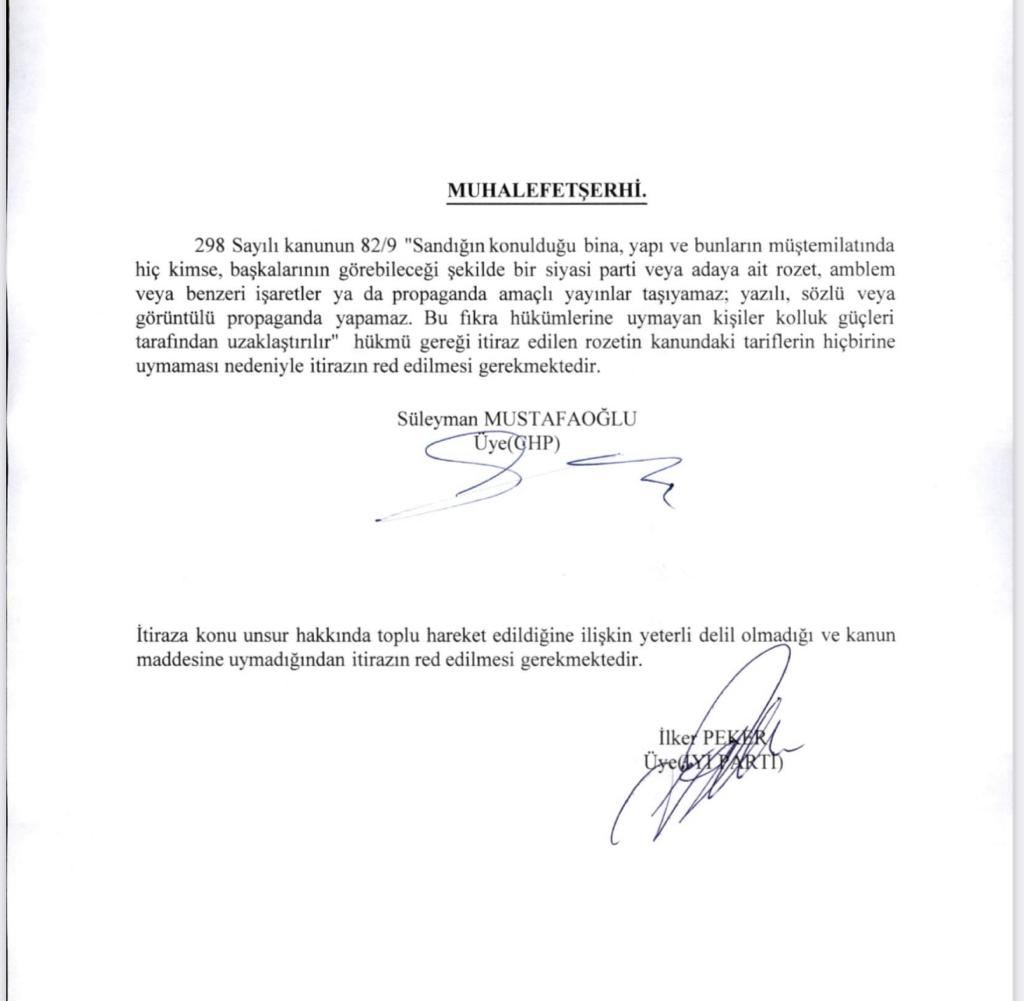 AKP tarafından yapılan itirazlara Yıldırım ve Mudanya İlçe Seçim Kurulları red kararı verirken, Mudanya İlçe Seçim Kurulu’ndan rozetlerin yasaklanması kararı çıktı.