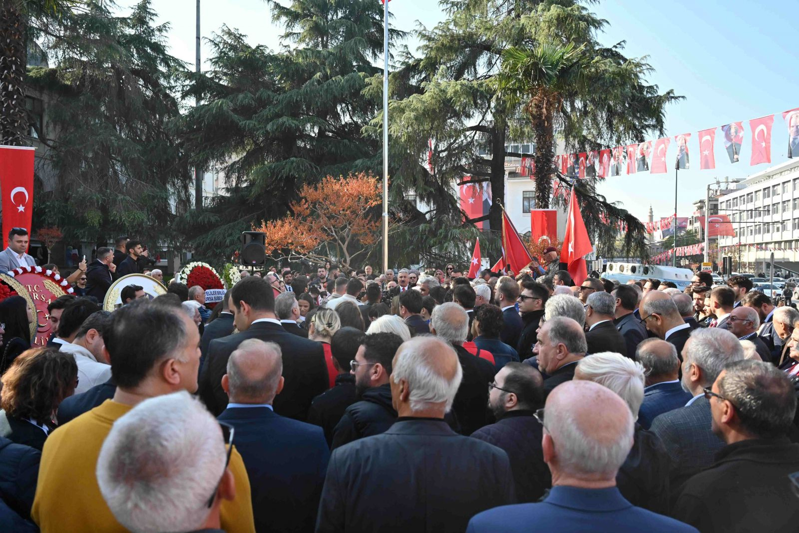 Saygı duruşu, İstiklal Marşı'nın okunması ve çelenk sunma töreninin ardından CHP Bursa İl Başkanı Yeşiltaş yaptığı konuşmada, "Emperyalizme karşı verdiğimiz savaşın sonunda; tam bağımsızlık, halkın egemenliği, halkçılık ve laiklik gibi sarsılmaz temeller üzerine inşa edilmiş olan Cumhuriyetimizin 101. yıldönümü. 101 yıl önce, dünya tarihinin gördüğü en büyük devrimlerimden birine şahit olduk. Egemenliğin kaynağı saraylardan alındı ve yoksul Anadolu halkına verildi. Cumhuriyet, Büyük Önderin, henüz öğrenciyken yüreğinde büyütmeye başladığı bir inançtır.” dedi.