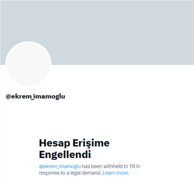 İstanbul Büyükşehir Belediyesi Başkanı ve Cumhurbaşkanı Ekrem İmamoğlu'nun X hesabı erişime engellendi.