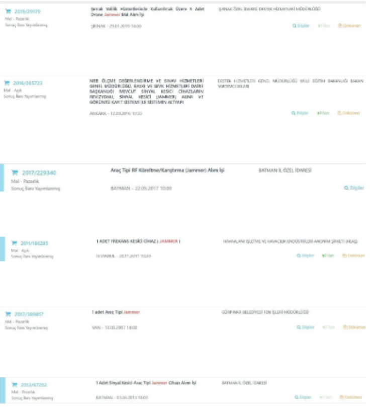 Tele1'in haberine göre, ihalelerde de pek çok kamu kuruluşunun jammer ihalesine katıldığı öğrenildi. İşte o kurumlardan bazıları: