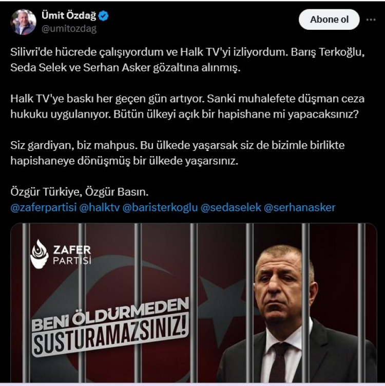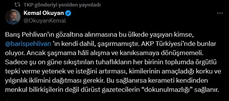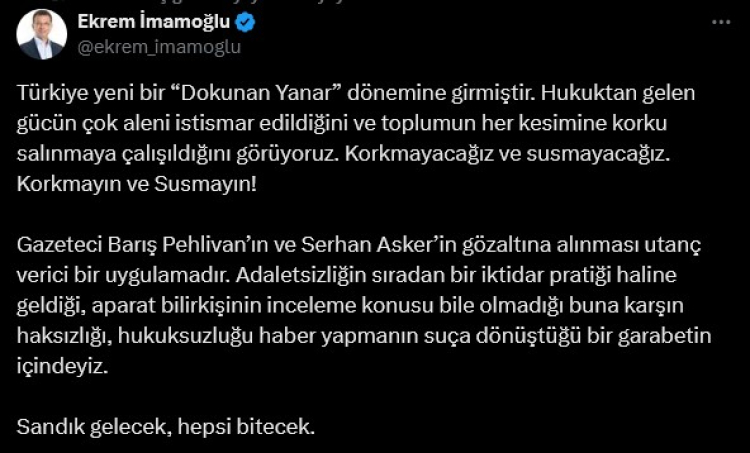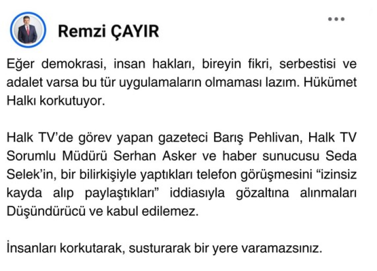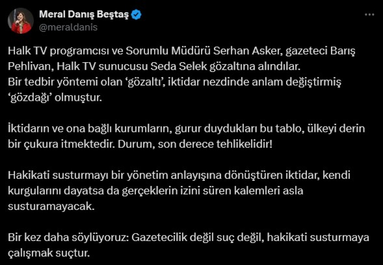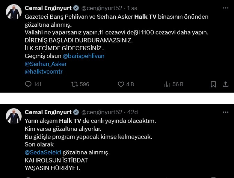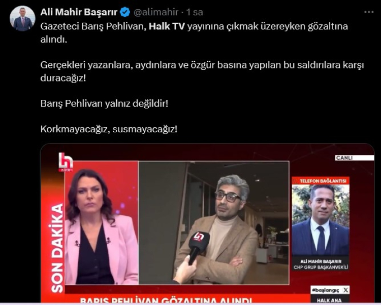 Halk TV gazeteciliğin temel ilkesi olan söz hakkı tanıdığı için susturulmaya çalışılıyor. Gazeteci Barış Pehlivan, İBB Başkanı Ekrem İmamoğlu'nun tepki gösterdiği Bilirkişi S.B'ye söz hakkı tanıdığı için Halk TV binası önünde gözaltına alındı.