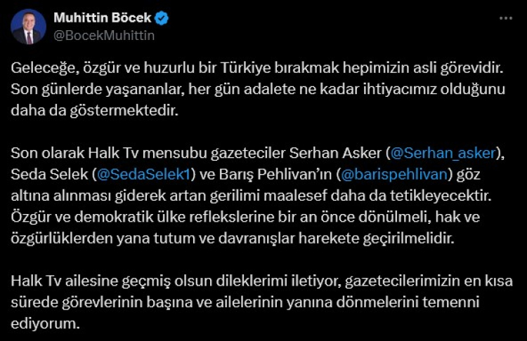 Halk TV'ye gözaltı dalgasının ardından muhalefet ayağa kalktı. CHP'nin Halk TV'nin önünde toplanma çağrısının ardından TKP ve TİP de çağrı da bulundu. Siyasetçiler halkın haber alma hakkında yapılan operasyona tepki gösterdi.