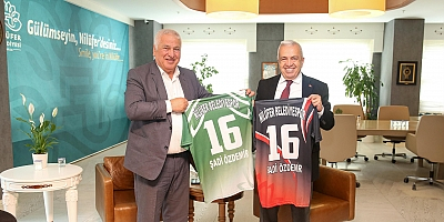 Ziyaretinsonunda Nilüfer Belediyespor Başkanı Muharrem Or, Nilüfer Belediye Başkanı Şadi Özdemir’e hentbol takımının formasını hediye etti.