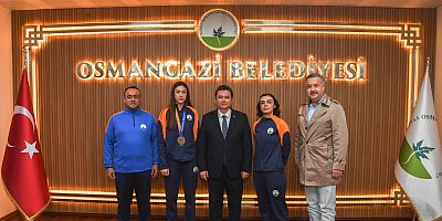 Osmangazi Belediye Başkanı Erkan Aydın, Bursa’ya büyük başarılarla dönen sporcuları, Osmangazi Belediyespor Kulübü Başkanı Fatih Karayılan ve antrenörleriyle birlikte makamında ağırlayıp tebrik ederek çeşitli hediyeler verdi.