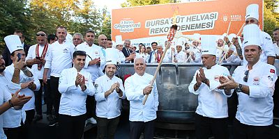Bursa Büyükşehir Belediyesi tarafından Bursa’nın tescilli lezzetlerini dünyaya duyurmak amacıyla düzenlenen 3. Bursa Uluslararası Gastronomi Festivali’nde, Türkiye’nin farklı kentlerinden gelen 150 civarında şefin katılımıyla ‘Bursa Süt Helvası’ rekor denemesi yapıldı. Dev kazanda hazırlanan 5 ton civarındaki süt helvası, Başkan Mustafa Bozbey tarafından vatandaşlara ikram edildi.