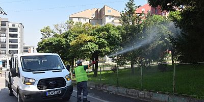 Yıldırım Belediyesi, ilçeye kazandırılan yeşil alan ve parklarda ağaç, bitki ve çimlerdeki zararlılara karşı ilaçlama çalışması gerçekleştiriyor.